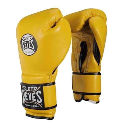 Cleto Reyes Hook and Loop Sparring Gloves. New style gloves without laces with a leather wrap around wrist and an extra long cuff for greater wrist protection. Sleek and contoured design, manufactured with the best quality goat skin and hand made in Mexico. Nylon water repellent lining offers excellent protection against sweat entering the padding. Extra Long cuff and hook & Loop closure offer greater wrist protection. Attached thumbs to prevent eye damage. available in 12oz, 14oz, 16oz