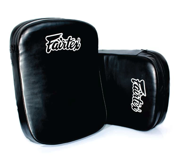 Fairtex kick shields are top of the range equipment designed to adsorb the heavy kicking punishment Muay Thai fighters dish out. Crafted in Thailand by one of the leading manufacturers in the world, constructed with Syntek leather and a high density foam core this is a pad designed to take heavy firepower and never break. Fairtex’s kickshield is built with a ‘pad holder’ system for maximum user comfort while you get kicked repeatedly. Ventilated down the sides of the pad, it will release air every kick. An essential purchase for any gym or trainee seeking to hone their kicks with a partner.
