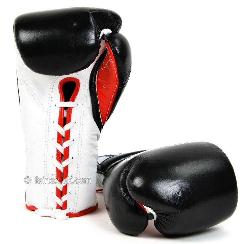 Fairtex lace up gloves are high density, compressed gloves meant for training heavy rounds of bag and pad work. Not recommended for sparring, these are premier gloves for training in, designed to pummel targets and never wilt from the pressure of strikes. The dual-layered latex foam core provides maximum protection whilst the extended triple ribbed sleeve with laces add support and comfort. These gloves are made by one of the best Manufacturers in the world, do not underestimate their quality. Fairtex produce some of the best leather equipment in Thailand and these are no exception, fabulous gloves.