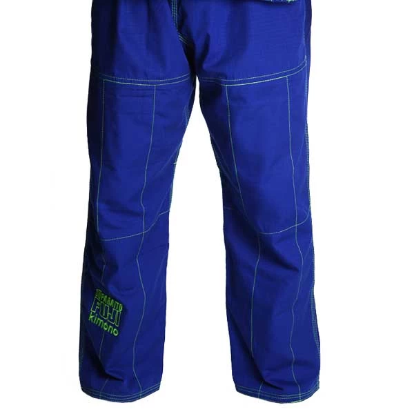 Suparaito, which means Super Lite in Japanese, is part of FUJI’s SUMMIT product line which is designed for serious competitors. The Suparaito gi features a very light pearl weave jacket with a ripstop collar with extra rows of stitching, and ripstop pants. Suparaito is IBJJF approved and comes in White with Navy and Blue with Green. It also features a stiff collar with extra rows of stitching to increase durability, bungee cord drawstring, and contrast stitching.