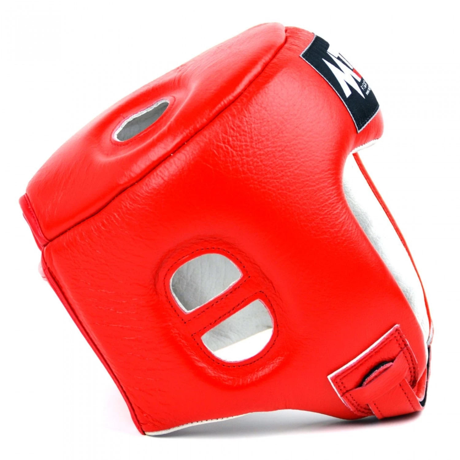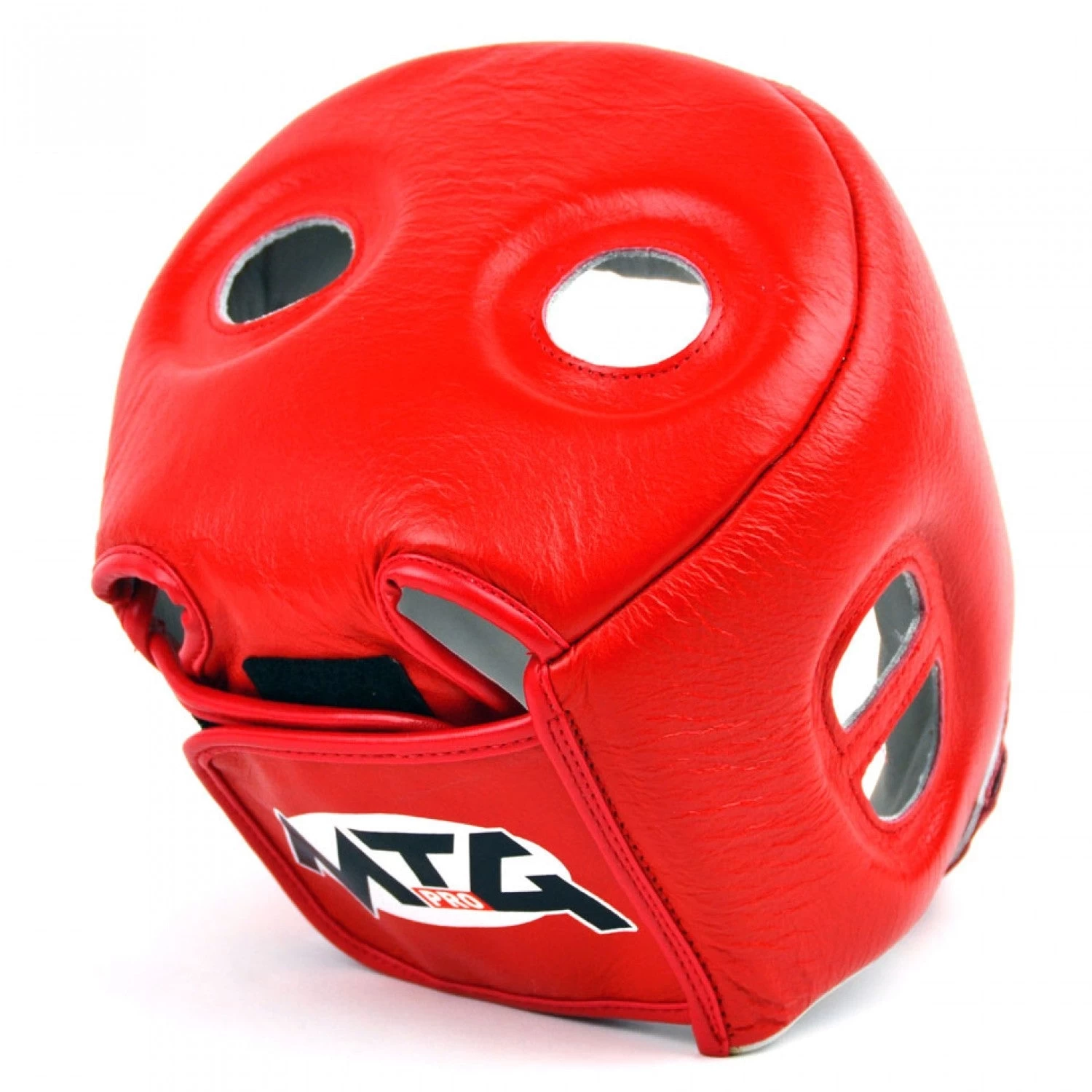 Open face competition style headguard from MTG Pro with a padded top and velcro chin strap.