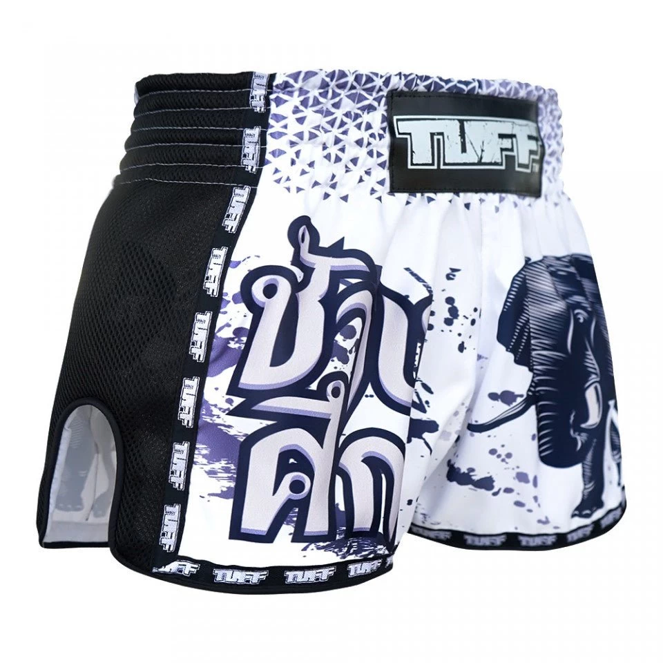 MRS203 TUFF Muay Thai Shorts Retro Style White War Elephant