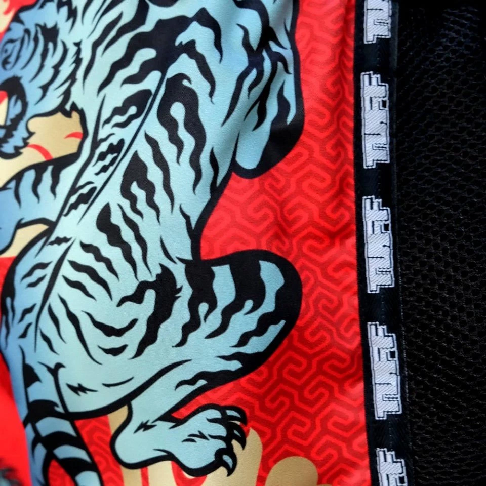 MRS303 TUFF Muay Thai Shorts Retro Style Red Cruel Tiger