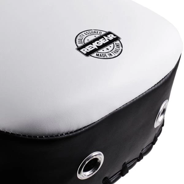 Unlike the more MMA Style, Revgear Curved Thai The original Thai Kick Pad has the more traditional double arm strap as well as the riveted handle to the top. These pads are available in tough durable Syntek leather and in a range of colours.
